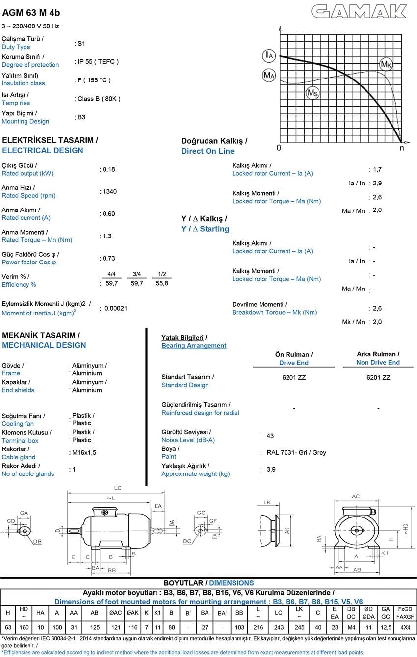 0.18 kw (1/4 HP) 1500 d/d Trifaze Elektrik Motoru