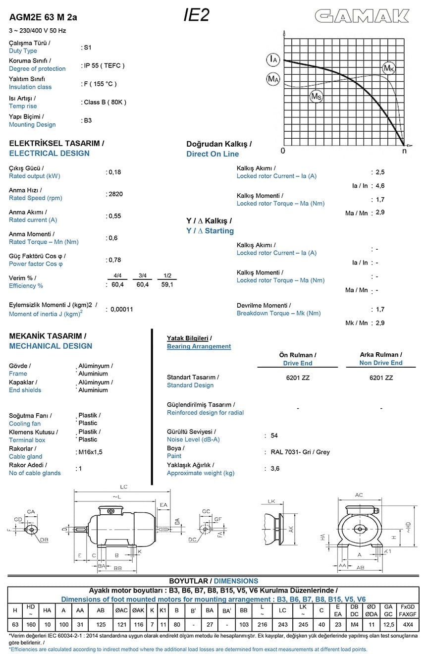 0.18 kw (1/4 HP) 3000 d/d Trifaze Elektrik Motoru