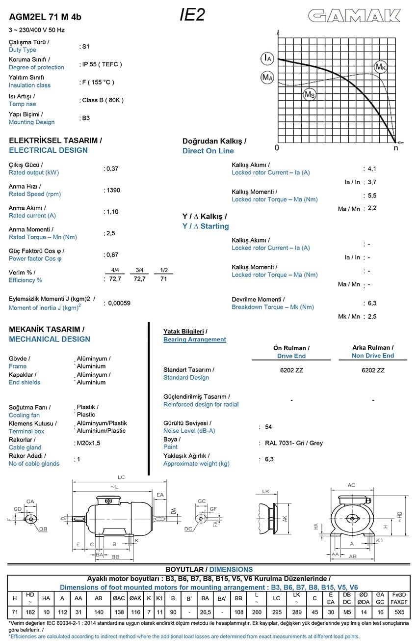 0.37 kw (1/2 HP) 1500 d/d Trifaze Elektrik Motoru