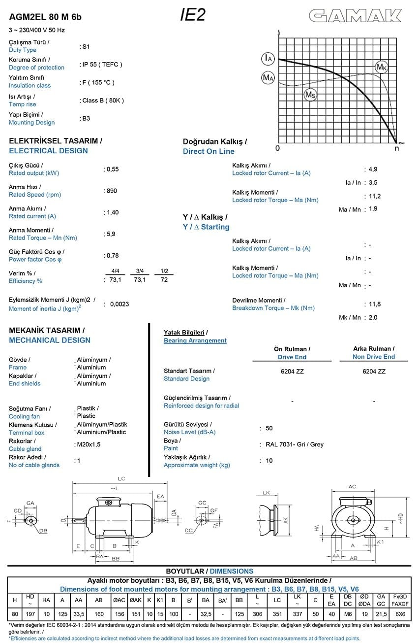 0.55 kw 1000 d/d Trifaze Elektrk Motoru