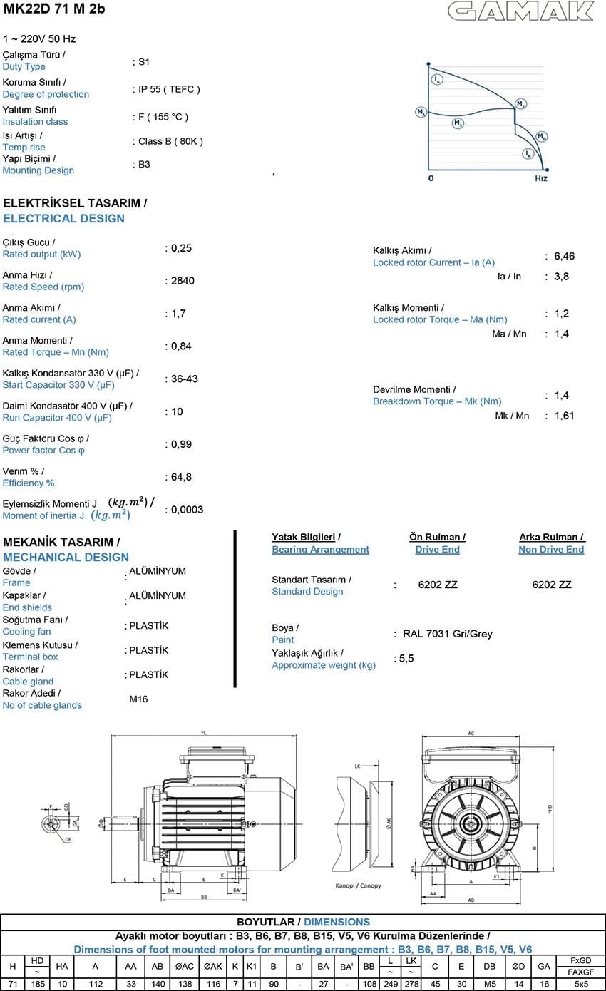 0.55 kw 3000 d/d Monofaze Daimi Kondansatörlü Elektrik Motoru
